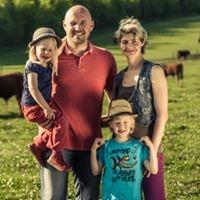 Hallo wir sind die Familie Leitner. Joe, Sabine, Josef-Alexander und Johanna. Wir bewirtschaften gemeinsam mit Oma Gertraud den elterlichen Betrieb.